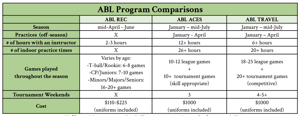 Please use this link to register if you have been selected to be a head coach or assistant coach for one of our ABL teams for the 2026 Baseball season.